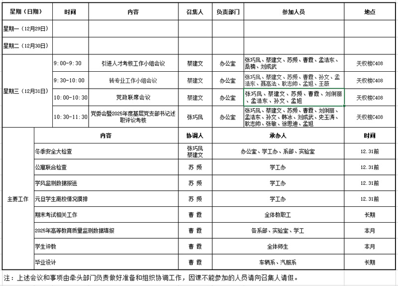 2025-2026-1学期第十八周工作安排