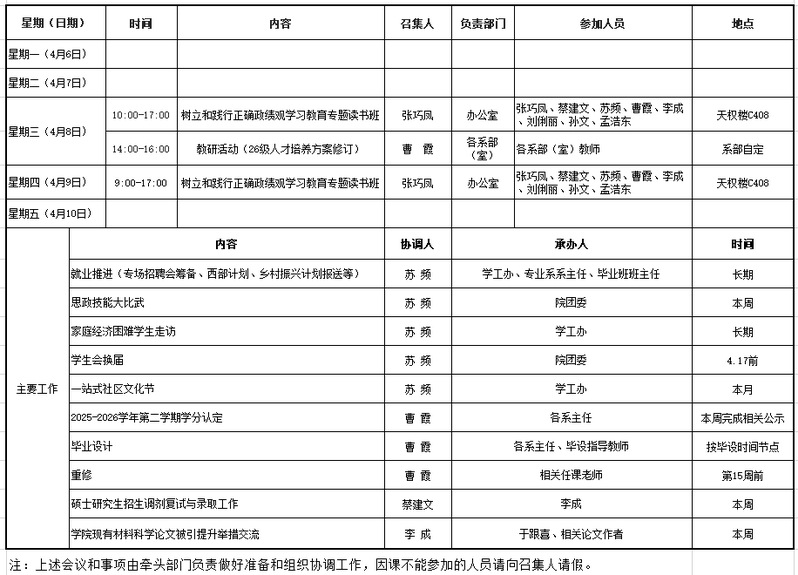 2025-2026-2学期第六周工作安排